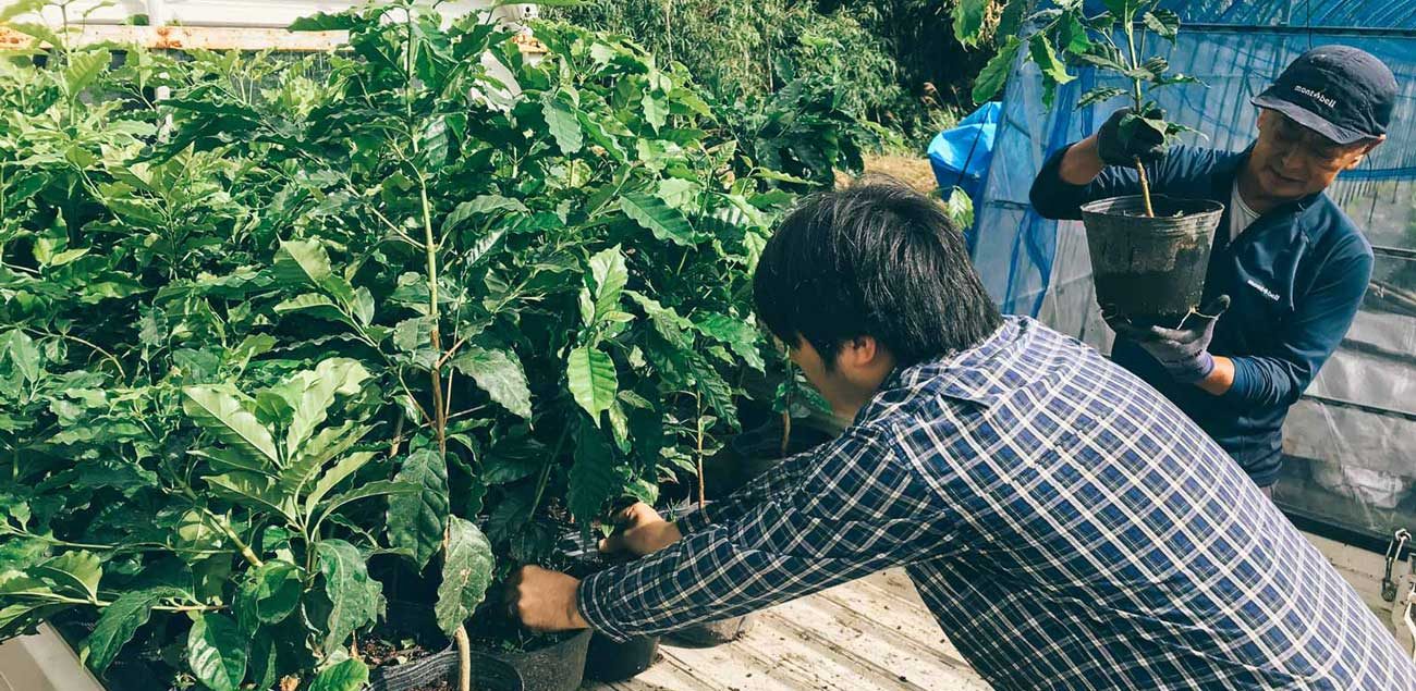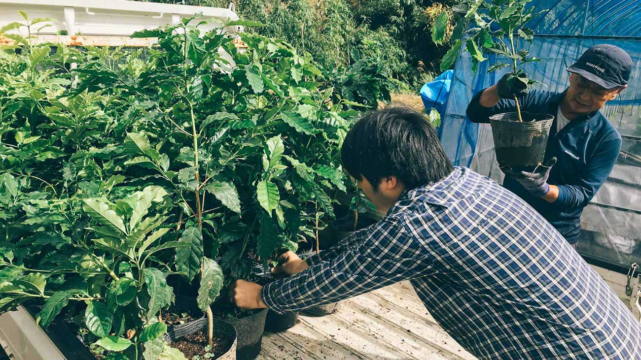 後藤コーヒーファームから、上野ファームにコーヒー苗を移しました。上野ファームは主にぶどうとお米を生産されていて、今回コーヒーを育てる圃場(ほじょう)では、以前はトマトを作っていました。阿蘇珈琲プロジェクトでは、農家さんがすぐ珈琲栽培を始められるように苗を育てています。今日、軽トラ一杯に苗は上野ファームへ嫁ぎます。来年の秋には上野ファームでも赤い珈琲の実がつくことでしょう!