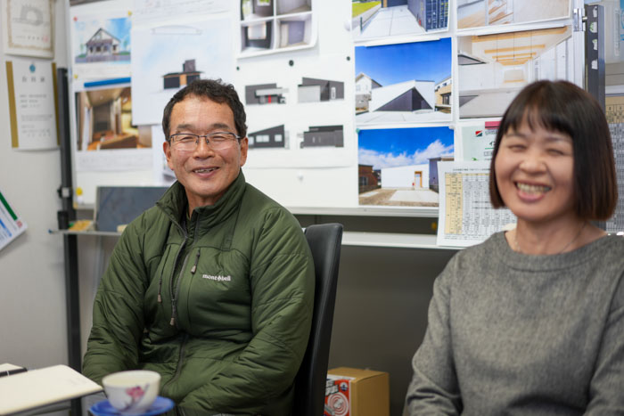 ほがらかで親しみやすい社長ご夫妻。建てた後も続くご縁を大切にしています。