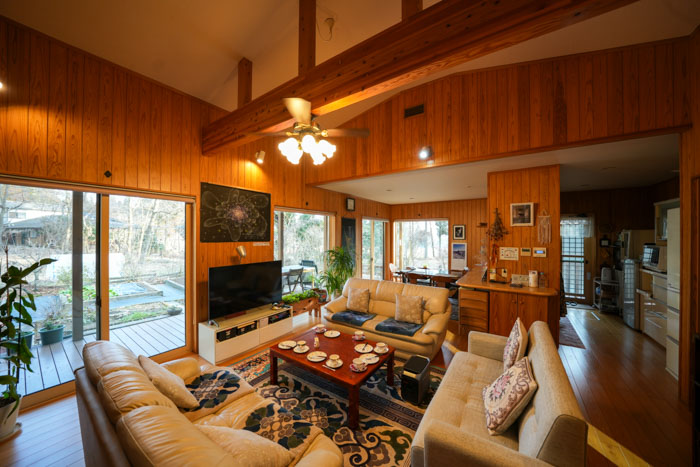 壁には杉材、床には檜。天然木に包まれた空間は、15 年という年月を経てもなお、やわらかな温もりを保っていました。「最初はクロスでいいと思っていたんです。でも、“せっかく良い木があるから”と志賀さんに勧めてもらって。今では本当に気に入っています」
