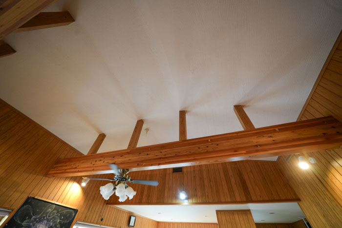 太い梁がアクセントとなり、空間に伸びやかなリズムを与えています。