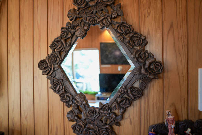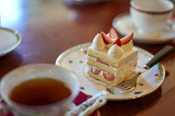 インタビュー中、振る舞っていただいたケーキは奥様手作り。手先の器用な奥様が掘ったという木彫の作品が至るところに飾られ、心豊かな暮らしぶりがうかがえます。