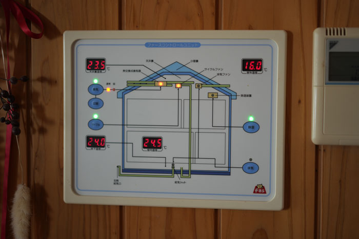 室温・湿度を一括管理する専用コントロールユニット。室内・外気・天井裏・床下の温度が表示され、ボタン一つで最適な環境に調整できます。