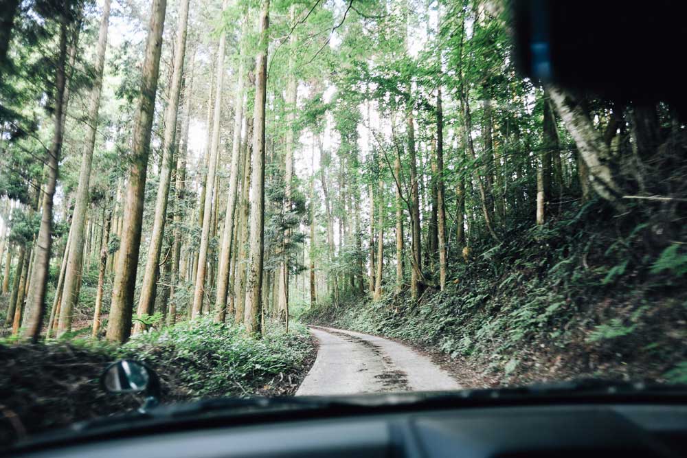 今回ご紹介する物件に案内していただいたとき、正直「おいおい、一体どこに連れて行く気なんだ」と不安がよぎるほど、その道中はなかなかに険しいものでした。ギアを1速に入れて坂を走り抜けると、「見えました」と指示された先。