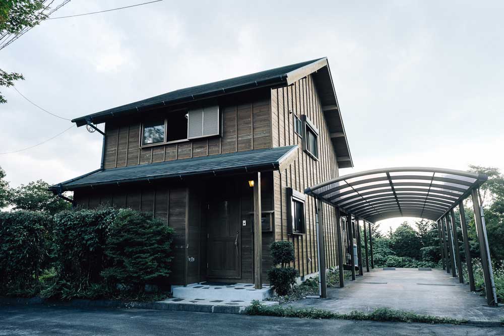 日田産の杉材で作られた、木のぬくもりが感じられる外観。駐車場も2台止めれます。