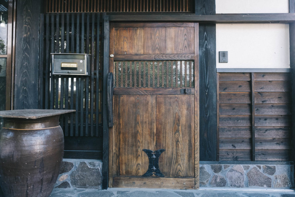 玄関から個性爆発です。この蔵の扉のような重厚感。しっかりと守ってくれそうな力強さがあります。私なんぞが入ってもいいんですか?と躊躇われるほど。でも、入っちゃいますよ。大きな窓からちらりと見える内観が、居心地がいいに違いない!そう思わせてくれるからです。