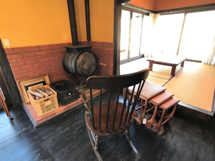 目についたのは、趣のある薪ストーブ。なんと、車のホイールを使って作られたものだとか。夏は涼しくて過ごしやすい南阿蘇。その分冬は少々寒いのですが、この薪ストーブがあれば、冬でも帰るのが楽しみになりそう。薪ストーブのある生活って、憧れなんだよなぁ。もちろんしっかりと機能します。