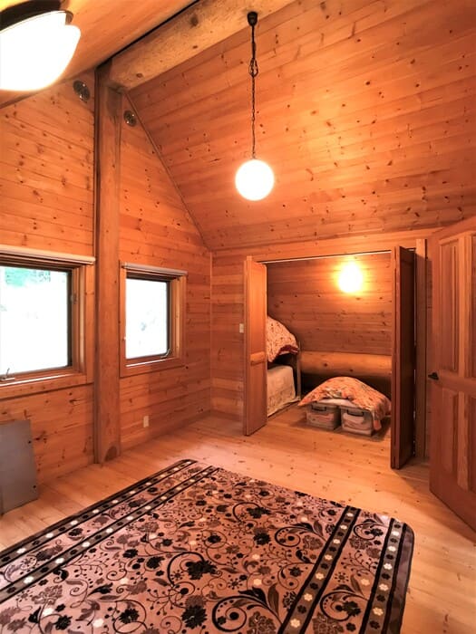 ログハウスの質感が気持ちよくて床や壁をつい、なでなでしたくなります。