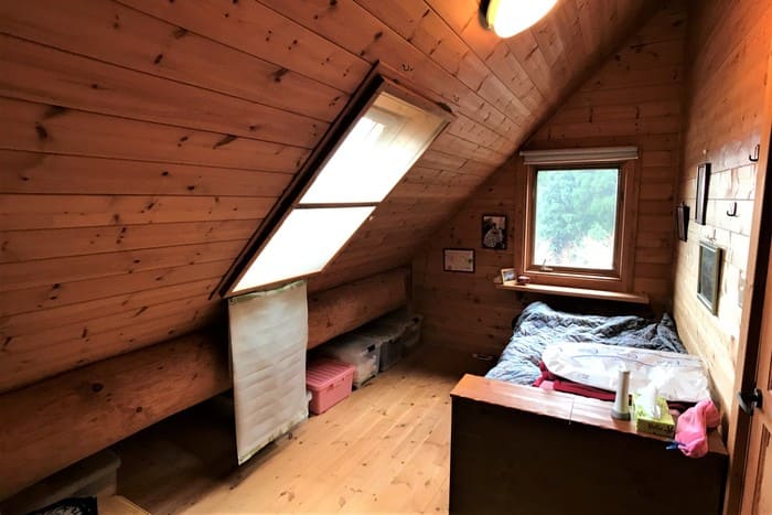 写真左の6帖の広さがある離れは、ログハウスの建築途中にオーナーさんたちが寝泊まりしていたもの。アトリエなどにも使えそうです。右側は作業小屋。