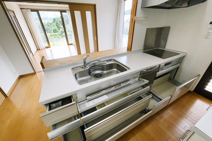 ダイニングキッチンにも南向きの大窓があって明るく、気持ちのいい風が通り抜けます。
