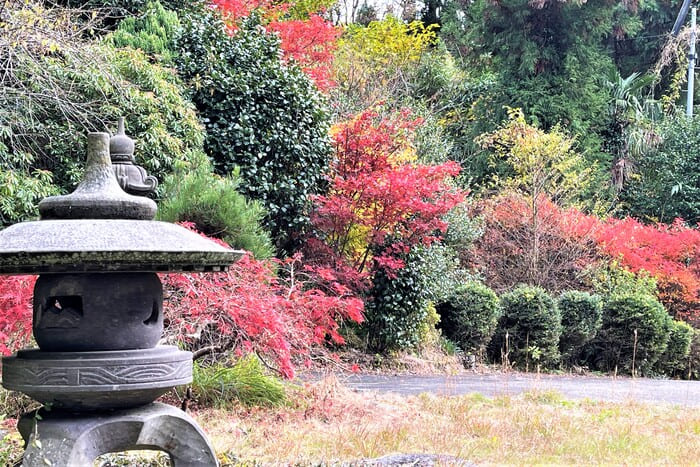「母屋」の南側には和風庭園があります。阿蘇には庭木を生産している造園屋さんが何件もあるので、圃場で好きな木を選ぶと楽しそうです。