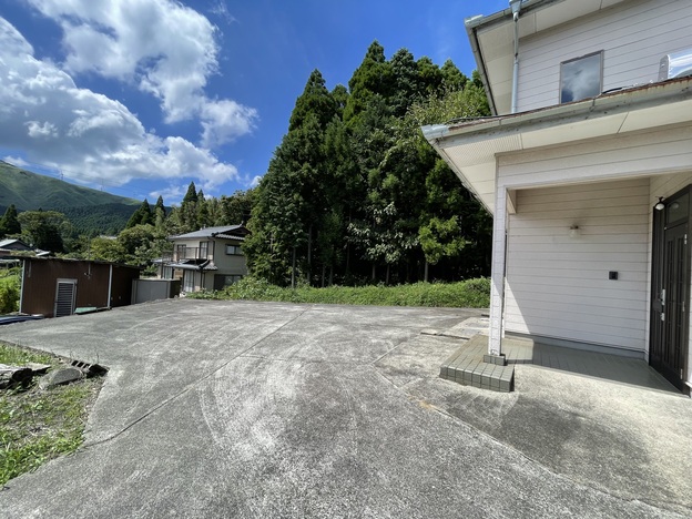 ご覧のとおり、友人や親戚が車で集まってもドンと来い、の広さ。地面はコンクリートなので、草刈りをする手間もかかりません。