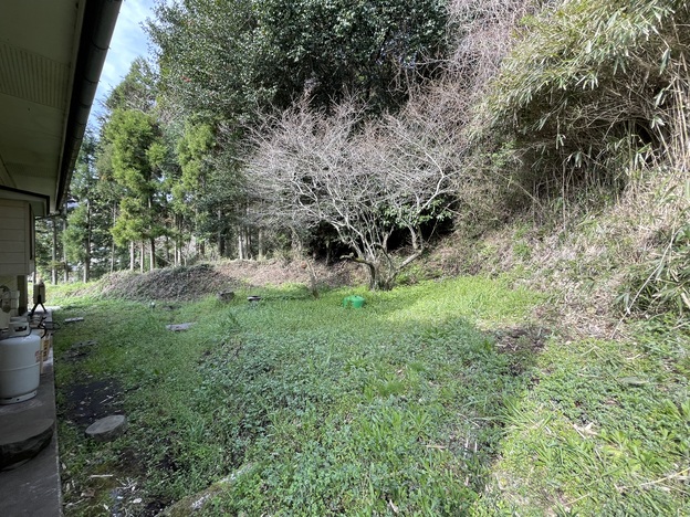 敷地の一角には、家庭菜園や布団を干すのにちょうど良い芝生があり、洗い場も備え付けてあるので、大自然を眺めながらバーベキューなんかも楽しめそう。