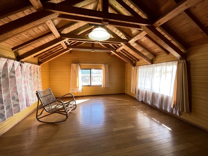 阿蘇の魅力、別荘地の居心地の良さ、利便性を兼ね備えた場所に今回ご紹介する物件はあります。何と言っても目立つのは出窓がついた三角屋根。実は屋根裏部屋になっています。山小屋的な、いや山小屋と言ってもいいそのプレーンな内装はある意味潔いです。物置にしてもよし、自分だけの天文台にしてもよし、巨大鉄道模型を敷いてもよし。快適に過ごすために断熱材などでDIYするのもOK!味付けはあなた次第です。