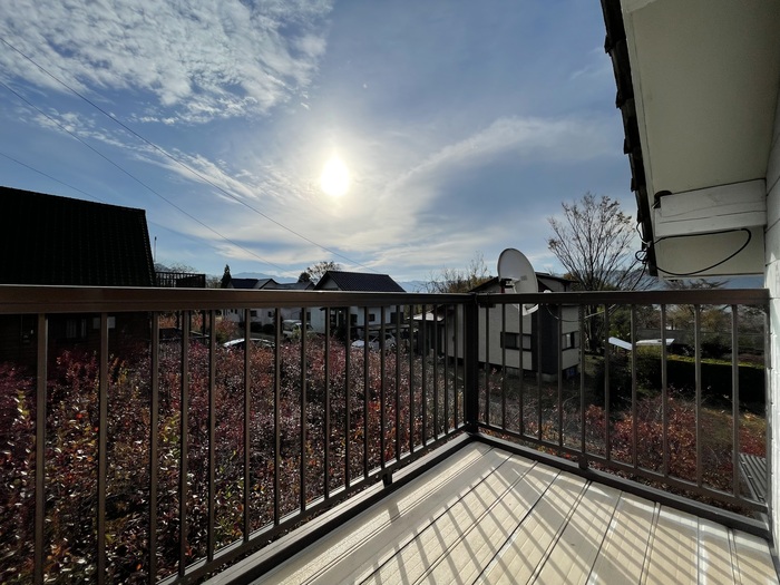 2階のバルコニーから南外輪山を眺める。気兼ねのない、自分だけのスペース。