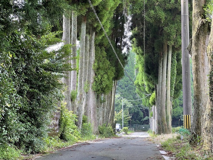 「元祖たかなめし」で有名な郷土料理店『あそ路』に隣接する、JR豊肥本線「市ノ川」駅から歩くこと15分(約1km)。ゲートのような杉の木立を通って集落に入ると、どこからともなく小鳥のさえずりが聞こえてきます。