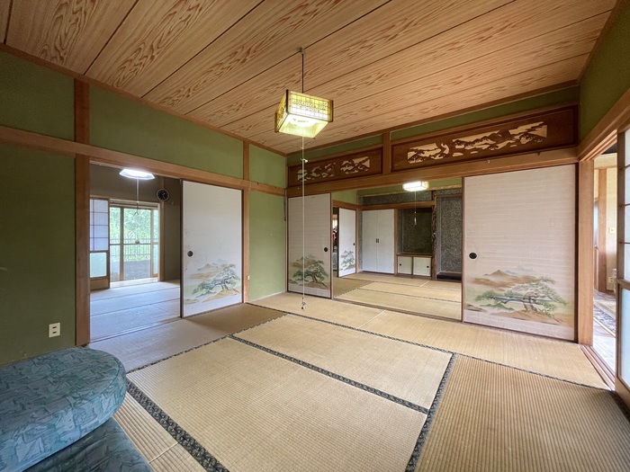 縁側と応接室を兼ねた9帖スペースに隣接するのは、田の字型に区切られた4つの和室。襖(ふすま)を取り外せば一つの空間として使える利便性の良さは、和室ならでは。