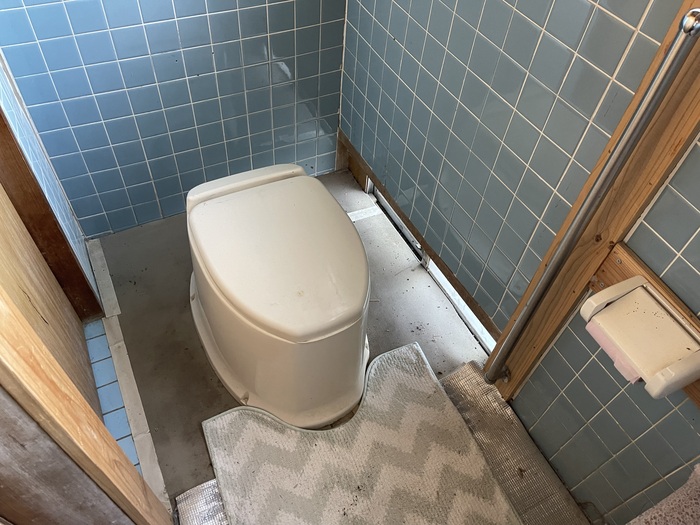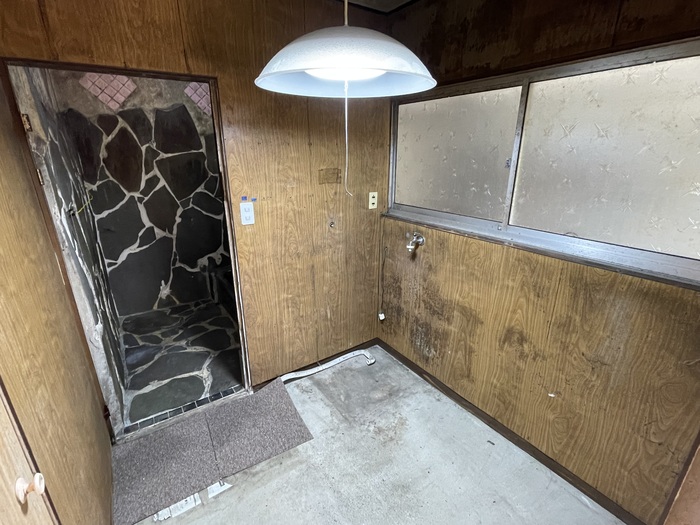 なお、建物向かって右側に部屋を増築していた部分がありましたが、今回の売却のタイミングで解体をされました。そのため、部屋があった部分の外壁をブルーシートで覆っています。