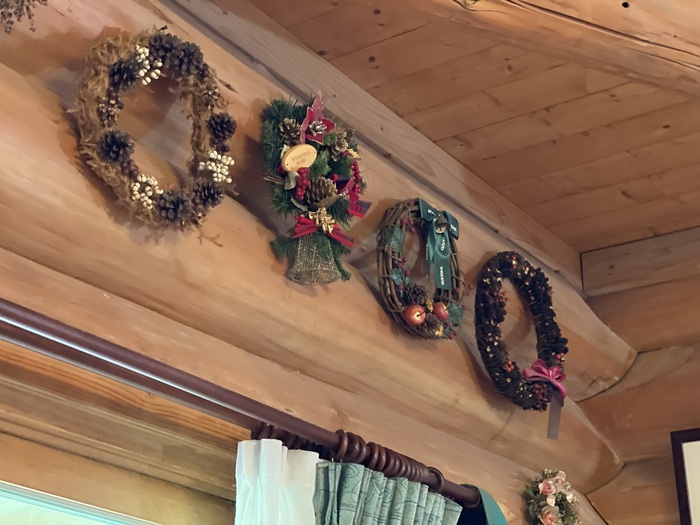 壁には海外のお土産グッズが飾られ、世界を飛び回った現オーナーさんのこだわりがログハウス造りにも生かされていると感じました。