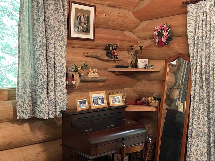 それぞれの空間を仕切る入り口をよく見ると、丸太の上部がハートやクローバーの形をしているではありませんか!これまで数々のログハウスにお邪魔しましたが、こんなに凝った造りは初めて。
