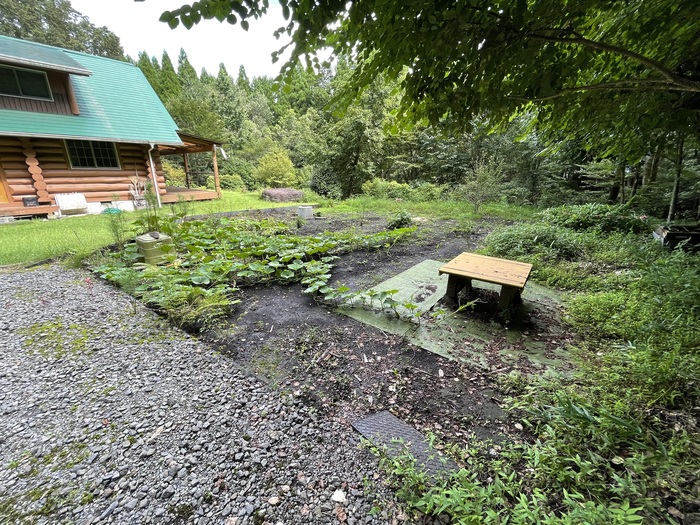 広大な敷地にはファイヤープレイスが設けられ、周囲にテントを張っても十分な広さ。アウトドア好きな友人たちを招いてちょっとした野外フェスが開催できそうです。家のとなりには自家菜園ができるスペースもあり、現オーナーの奥様は夏野菜のナスやキュウリ、トマトなどを育てておられたそう。自分で作った野菜をもぎたてで味わえるなんて、最高の贅沢!