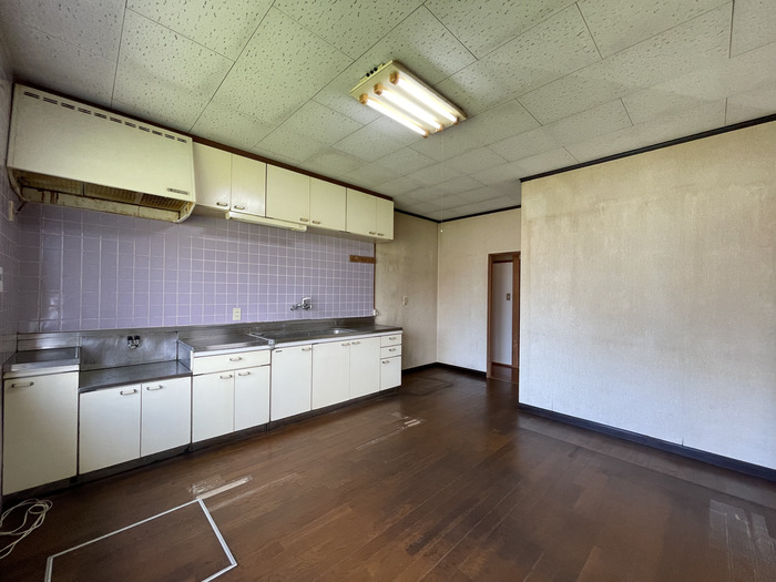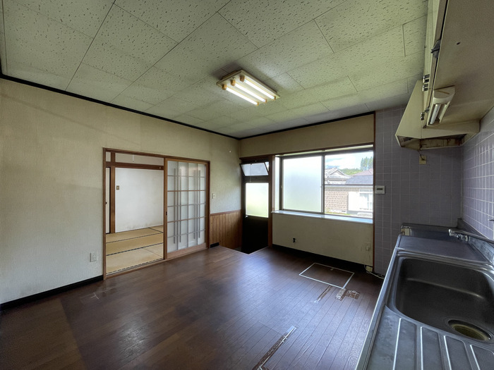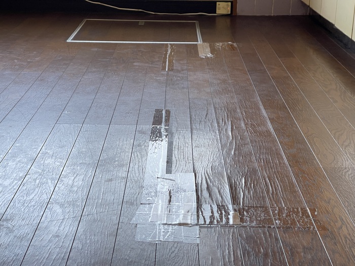 玄関正面の「広縁」、そして「キッチン床」のフローリングを歩くと一部にたわみがあり、指先に「おや?」と感じるものが。今すぐ陥没する心配はないものの、気になる方は引越し前に専門業者さんへ依頼して修復されることをお勧めします。ちゃんと直したい場合は床をすべて貼り替えることとなるため、それなりの金額がかかりますが、DIYが好きな方でしたらご自身で修復していくのも楽しいかと。