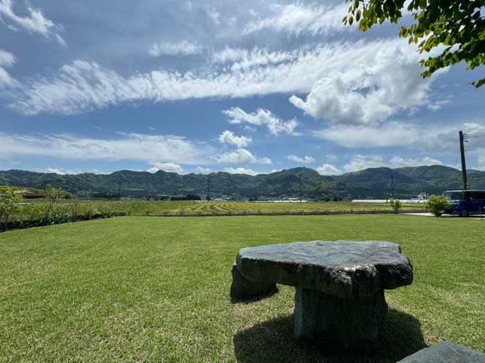 「水の生まれる里」と呼ばれる南阿蘇村の中でも環境省が日本全国から選ぶ”名水百選”となった「白川水源」まで車で約3分(1.5km)のところに位置しています。