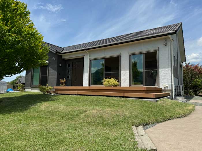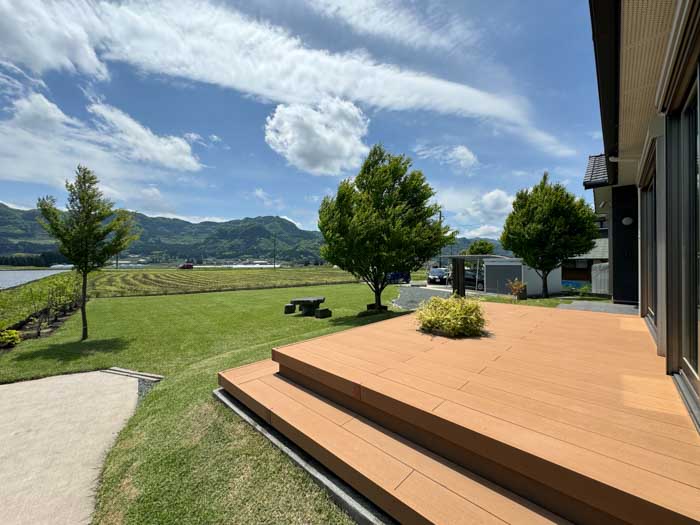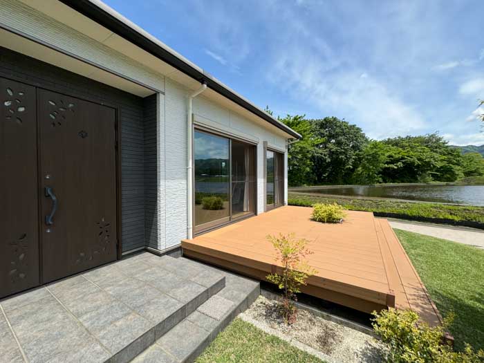 北側のデッキは奥行き2.4メートル。南側のデッキも含めて樹脂製なので、木製のデッキと比較して経年劣化しにくいのが嬉しい。