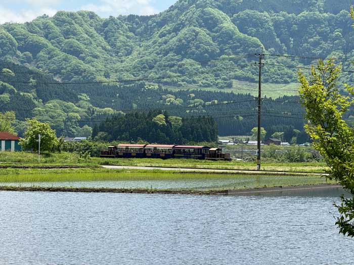 そんな打ち明け話に耳を傾けていると、リビングの窓越しに動くものが。田畑と山々の間を駆け抜けて行ったのは、南阿蘇鉄道のトロッコ列車。週末になるとこの光景を目にできるそうで、鉄道好きならずとも心浮き立ちます!