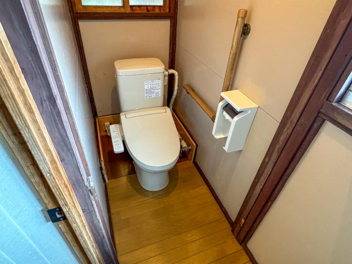 トイレは簡易水洗式。ウォシュレット付きなので、冬でもヒヤッとすることなく使えます。