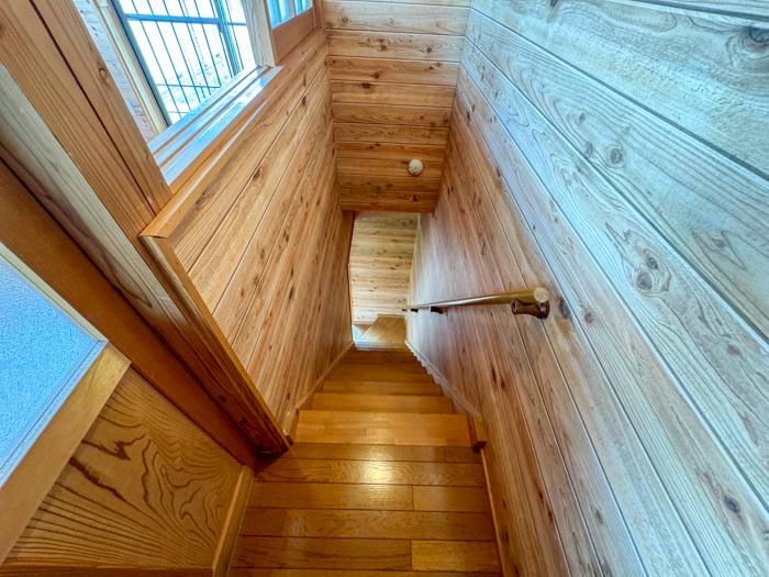 1階のリビングと2階の洋室は壁も天井も無垢材で仕上げられており、木のぬくもりを感じるカントリーな雰囲気。