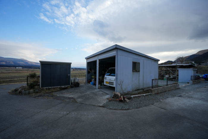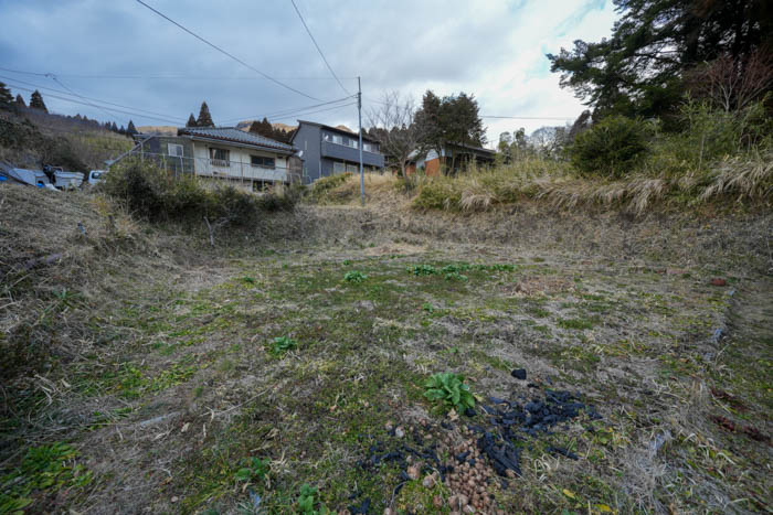 離れのさらに上段にある空き地は自家菜園にもってこい。北側の外輪山を背にして見下ろす母屋越しの景観もまた良い感じ。