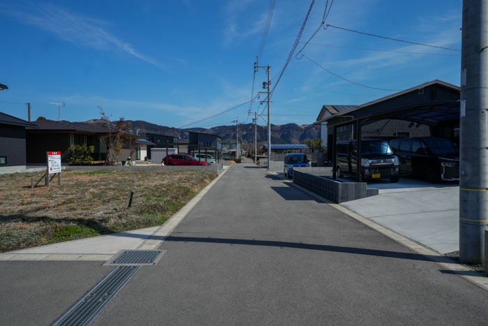 また、開放感あふれる角地であることも魅力です。その利点を活かし、敷地を有効に使った自由度の高い設計が可能です。周囲には新しい住まいが並び、同世代の家族も多く暮らしています。