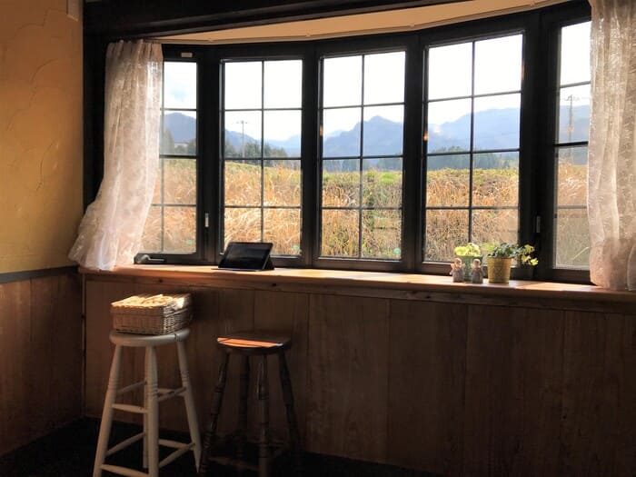 玄関から個性爆発です。この蔵の扉のような重厚感。しっかりと守ってくれそうな力強さがあります。私なんぞが入ってもいいんですか?と躊躇われるほど。でも、入っちゃいますよ。大きな窓からちらりと見える内観が、居心地がいいに違いない!そう思わせてくれるからです。