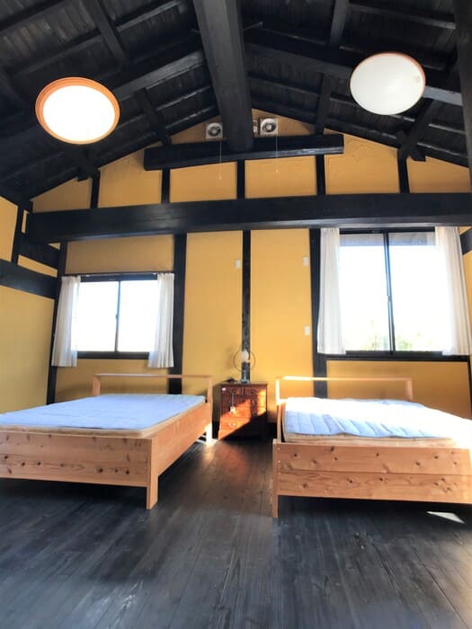 二階も見てみましょう。…あれ?ペンションに泊まりに来たんだっけ??そんな錯覚を起こしてしまうほどの贅沢空間。勾配天井なので、一階よりも天井がさらに高くなっています。家としても良いですが、民泊だったら人気の宿になりそうな予感。