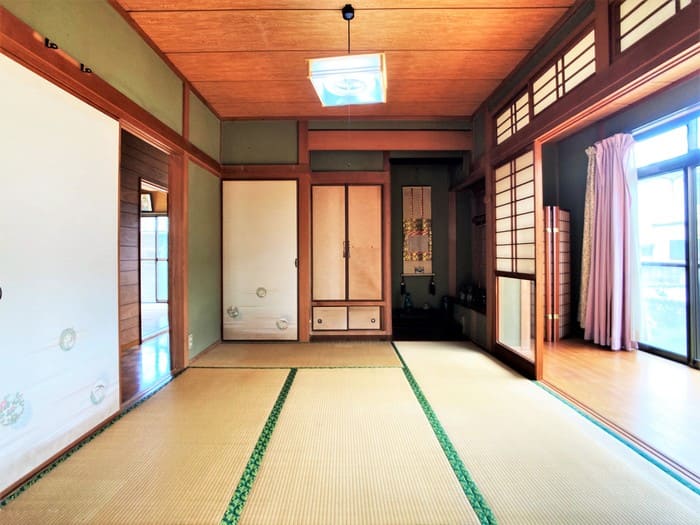こちらは6畳2部屋がふすまで仕切られた大きい家にあるような和室。ここをフローリングにリフォームすることで、広縁も含めた16畳強の広々とした部屋にするもよさそうです。もちろん現状のままでも使えます