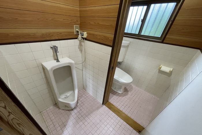 トイレは、温水洗浄便座付き大便器のほかに小便器も付いているので、男性はラクに用を足せてありがたい。