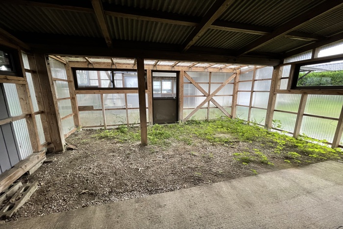 屋外からも出入りできるスペース。大型のペットを飼えそうな広さがあり、植物たちの温室として使っても。