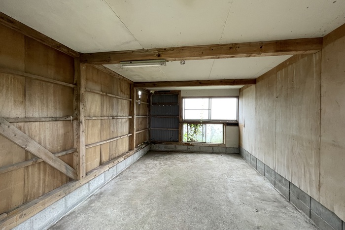 大型バイクや自転車、草刈り機などを置く物置きにしても。年期が入っているだけに雨漏りする可能性があるので、多少の雨露を受けても大丈夫なものを保管した方が良さそうです。