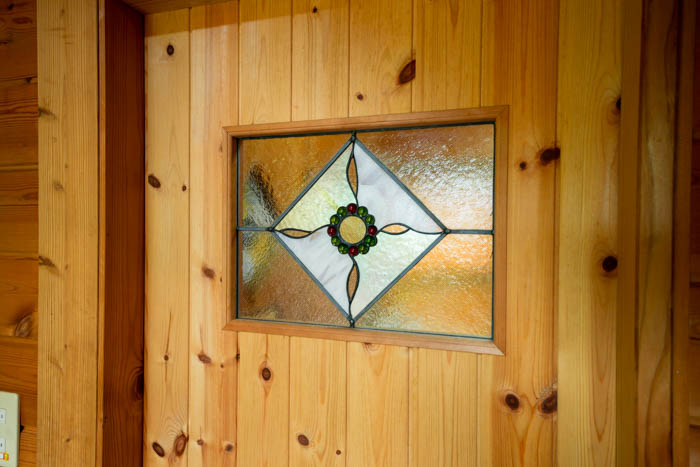 あちこちの扉の小窓にはステンドグラスがはめ込まれ、空間にちょっとしたアートを感じることができます。