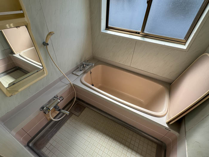 新しくなったのは洋室のフローリングだけではありません。キッチン、トイレのウォシュレット、シャワー付き洗面台も新品に取り替えたばかり! 風呂場は従来のままなのでそれなりに経年変化は見受けられるものの、バスタブも洗い場もゆったりくつろげるスペースがあります。