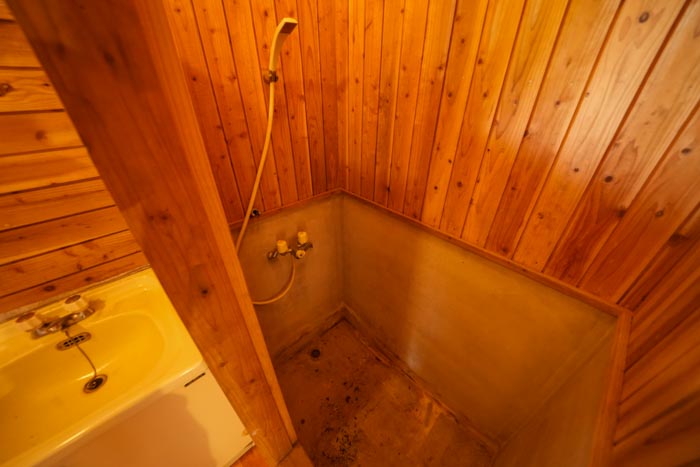 お風呂はシャワーのみです。湯船につかりたいときは近隣の温泉へ。