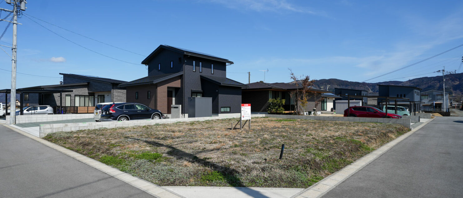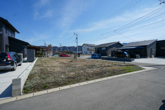 また、開放感あふれる角地であることも魅力です。その利点を活かし、敷地を有効に使った自由度の高い設計が可能です。周囲には新しい住まいが並び、同世代の家族も多く暮らしています。