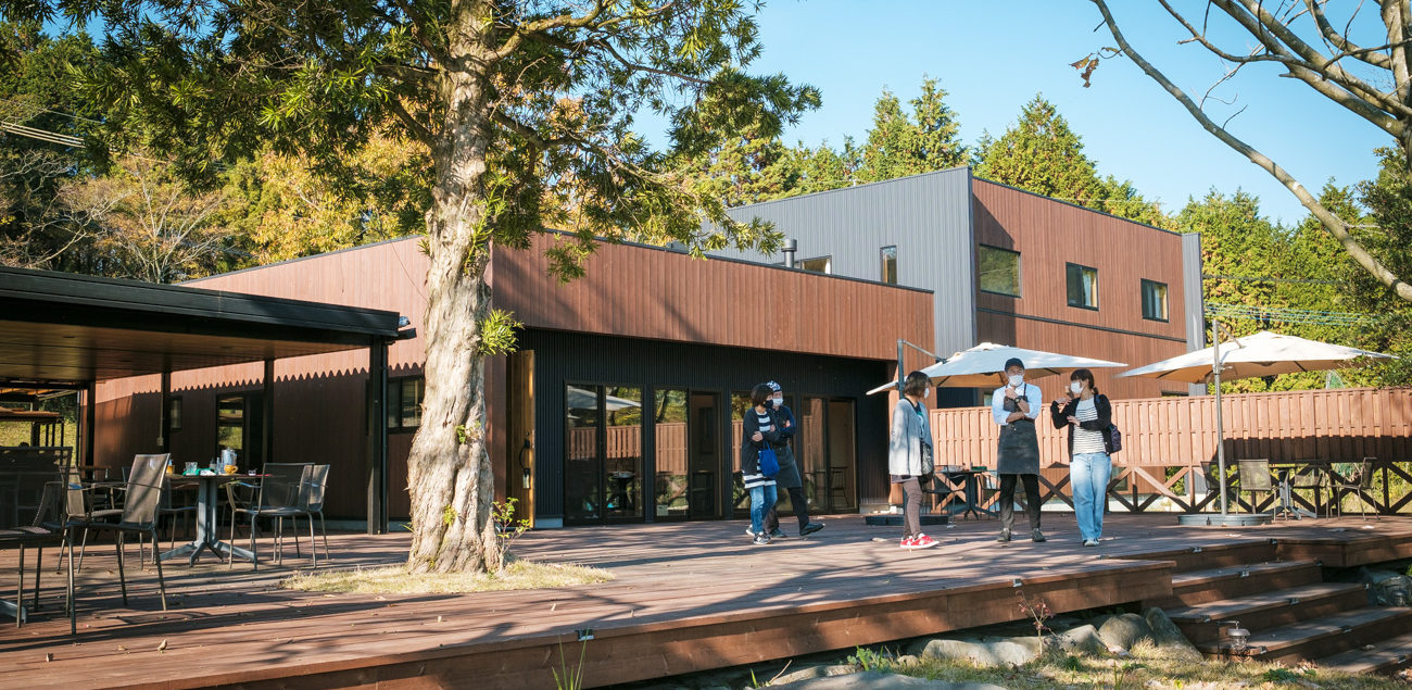 阿蘇山の西側、山裾に店を構えるレストラン「Minaasoマルデン」はまさに自然とともにあります。オーナーの増田一正さんの実家を改装した店舗は、緑に囲まれていて鳥のさえずりが降り注ぎ、都会のオフィスとは大違い。お店のコンセプトが「阿蘇の食とアウトドアを一緒に楽しめる空間づくり」というのもうなずけます。