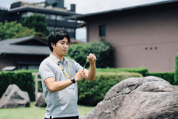 阿蘇のスプーン曲げパワースポットでのシーン。誰でも曲げられる話にするはずが、菊池は曲げれず。(詳しくはアソウト記事、阿蘇ホットスポット「ユリゲラーもびっくりなパワースポット cafe zen」