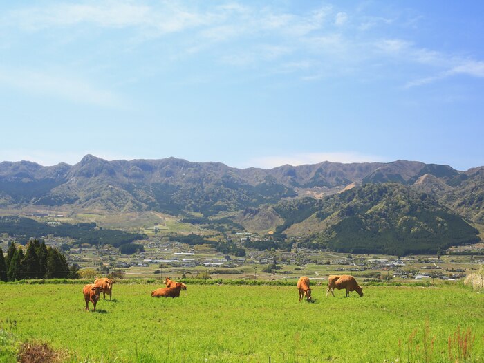 世界農業遺産に認定され、世界最大級を誇るカルデラ(火口)の中で人々の暮らしを営んできた熊本県・阿蘇エリア。その南に位置する南阿蘇村には全国名水百選「白川水源」をはじめとする湧水地が点在し、草原ではあか牛の放牧による畜産が営まれ、大自然を満喫できるアウトドア体験も盛ん。国内外から多くの観光客が訪れています。