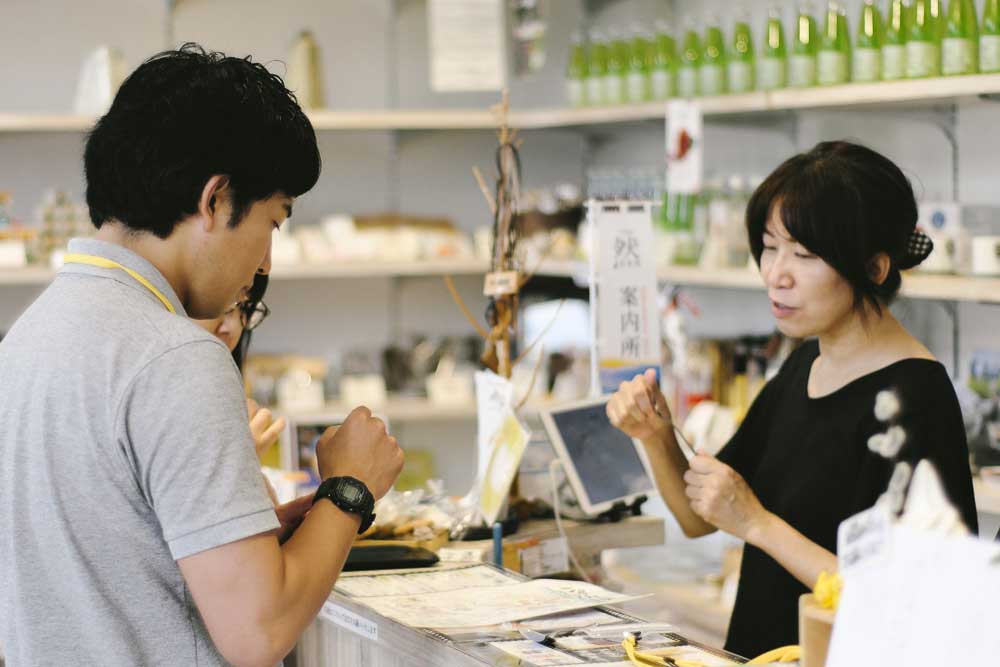 2013年にユニークな市民活動としてスタートした、阿蘇の風土と人を紹介する「火の国阿蘇の恵みのブランド―然」がきっかけに生まれたカフェ。思わず目移りしてしまう、ここでしか出会えない阿蘇の逸品がそろう。パワースポットの受付もこちらで行っている。